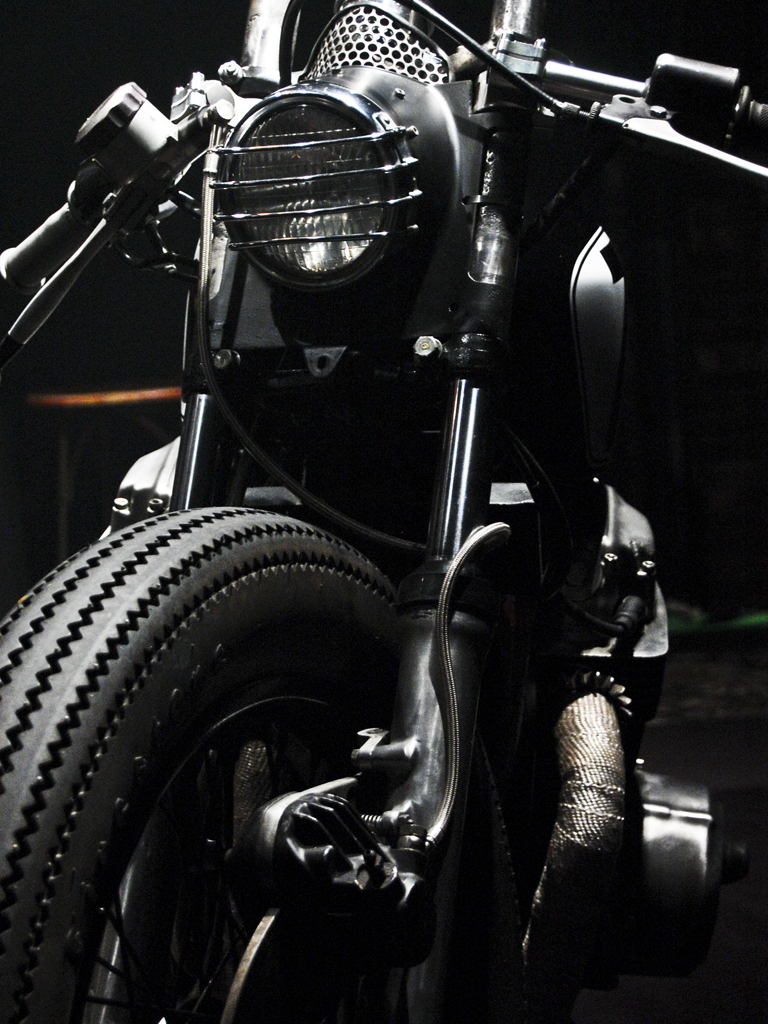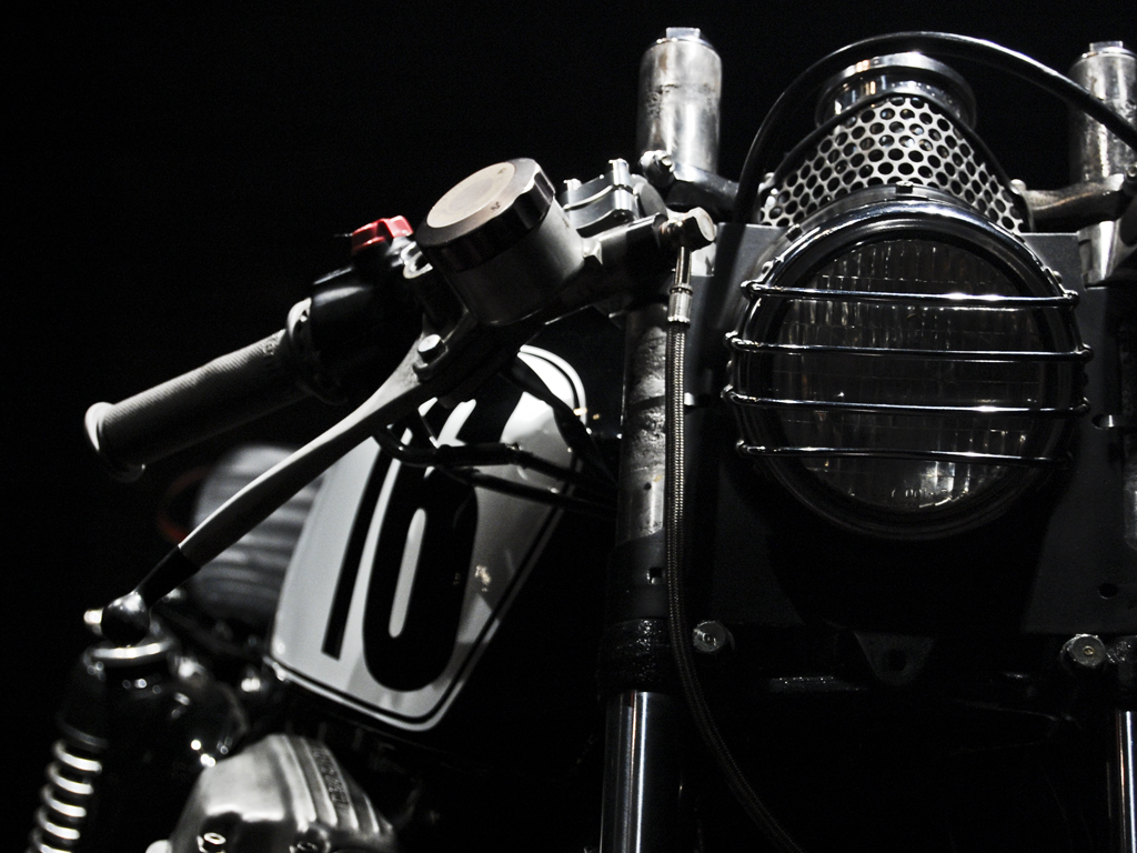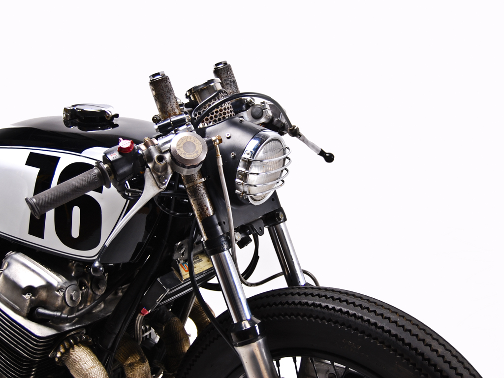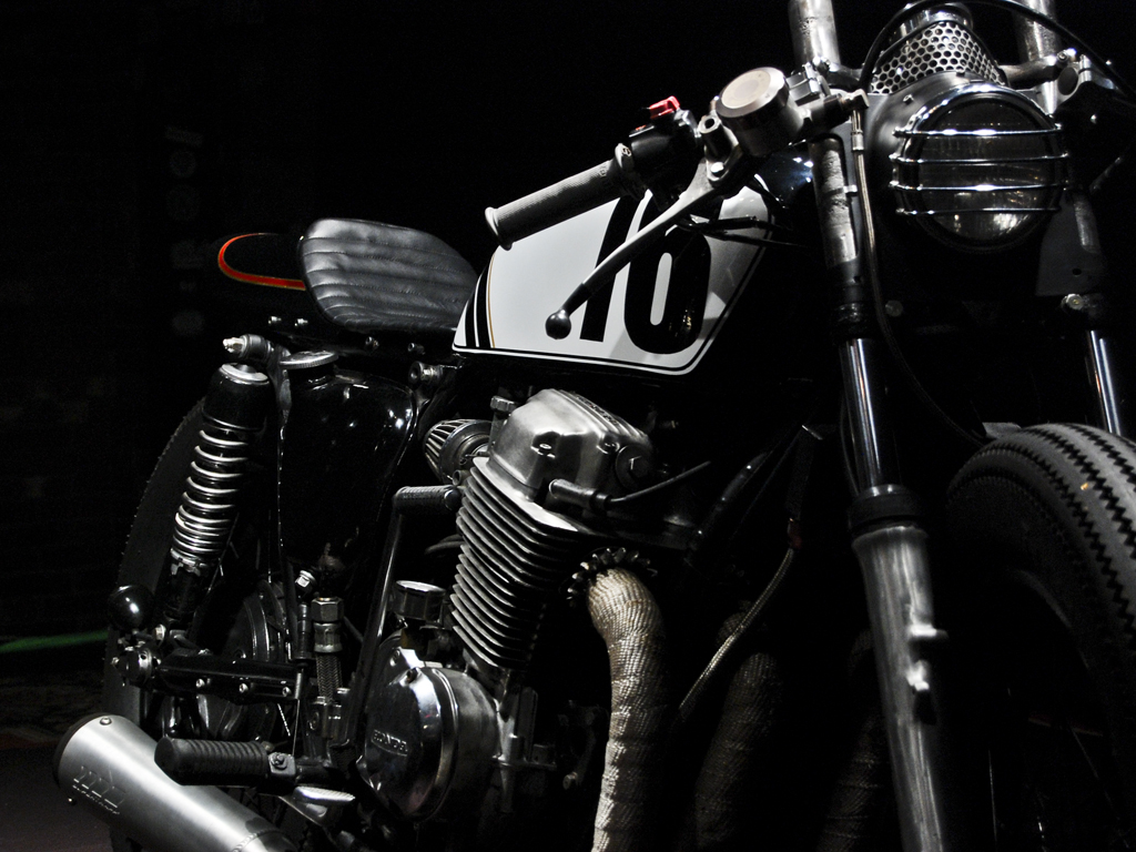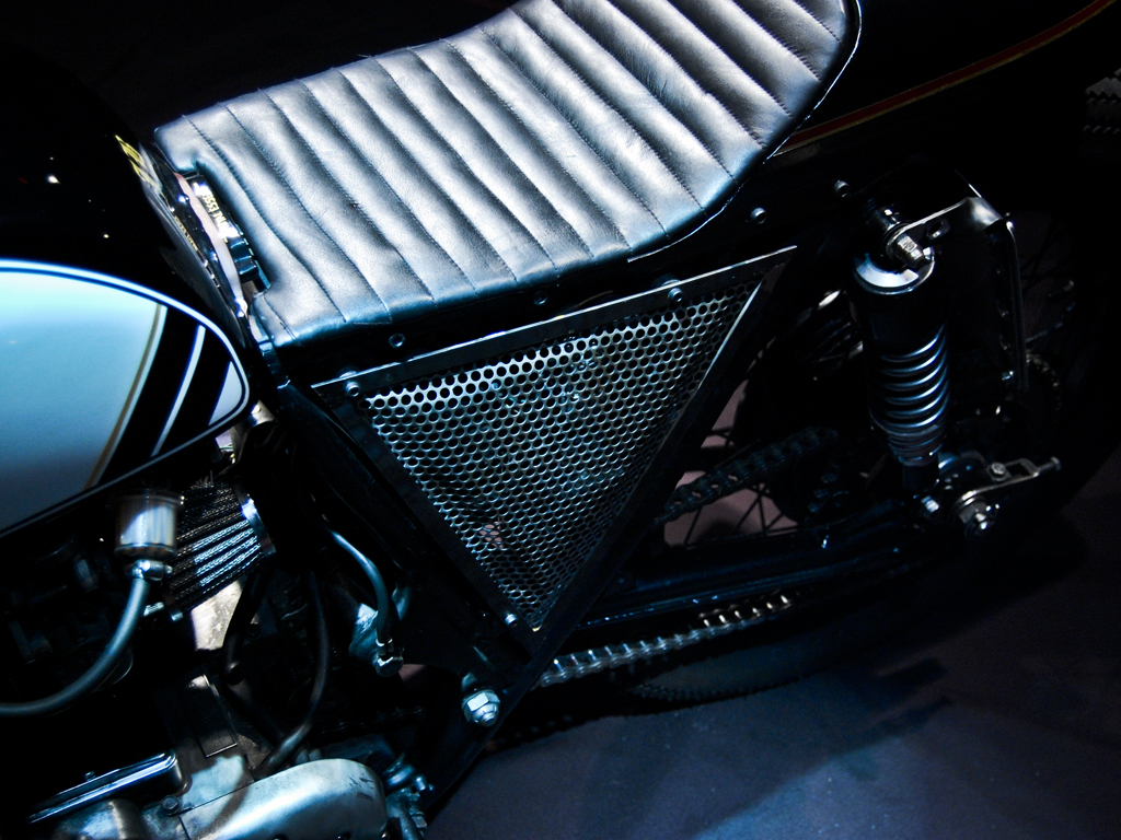Jon's daily ride, a 1976 Honda Cb750. Modifications include, suzuki trials headlight with h4 bulb, mini mesh tach cover, kawasaki kz tail, jet black paint, low profile leather seat and leather tank strap. Ceramic header wrap, super trapp exhaust. Powder coated wheels wrapped in firestone tires.